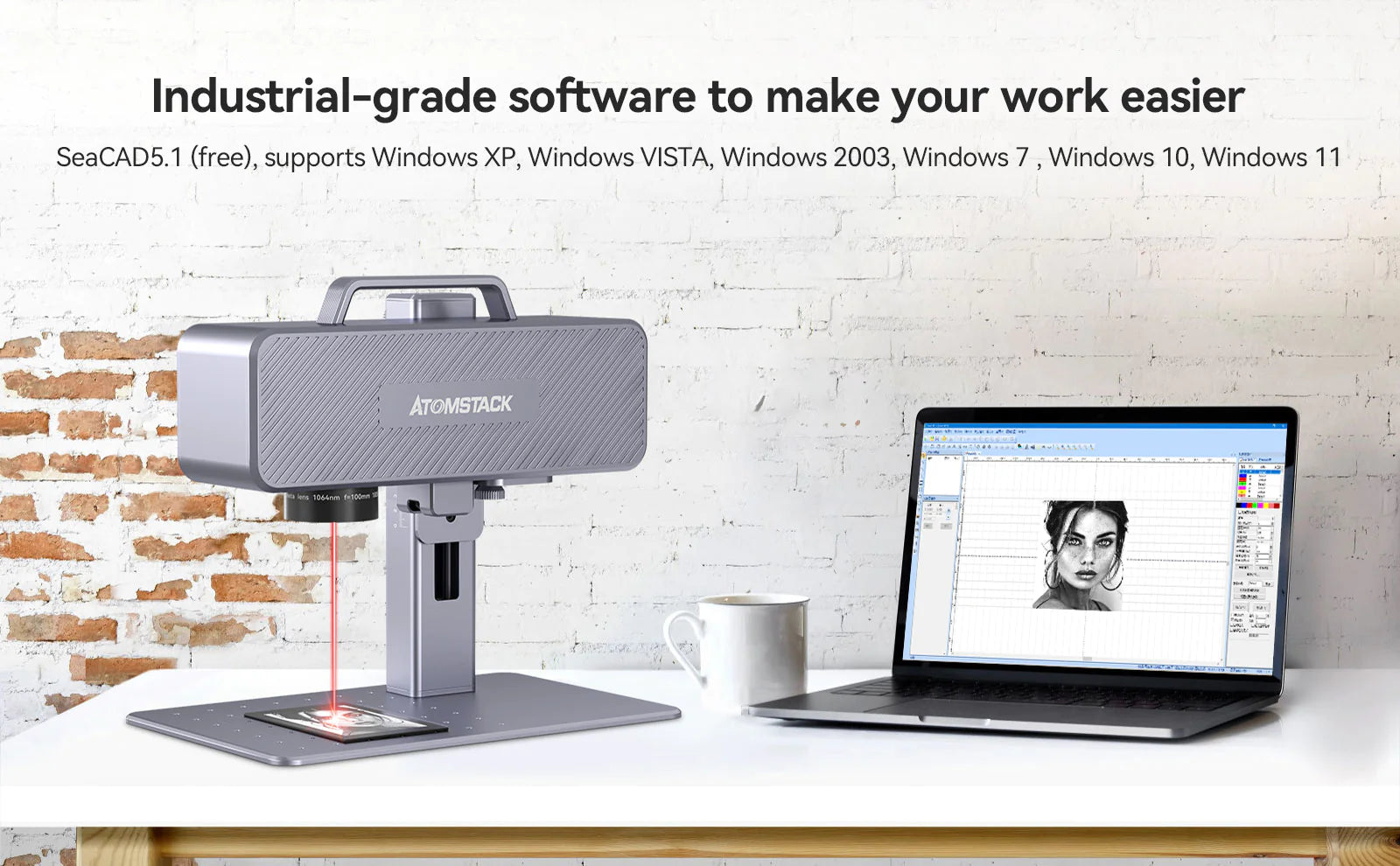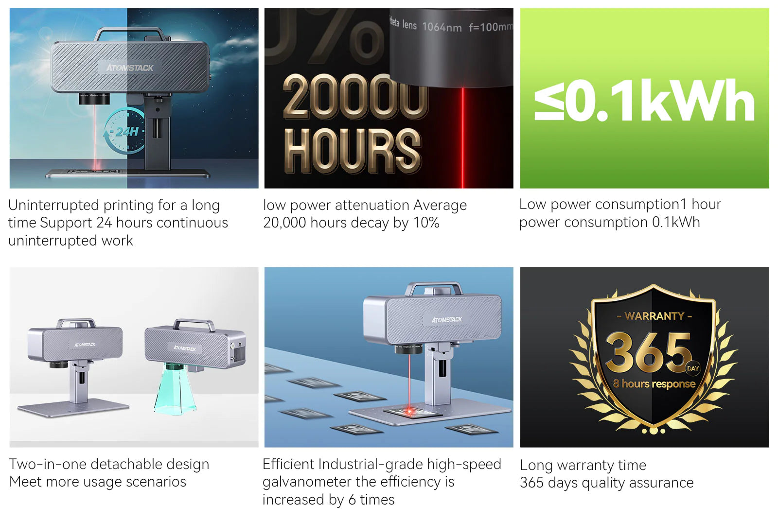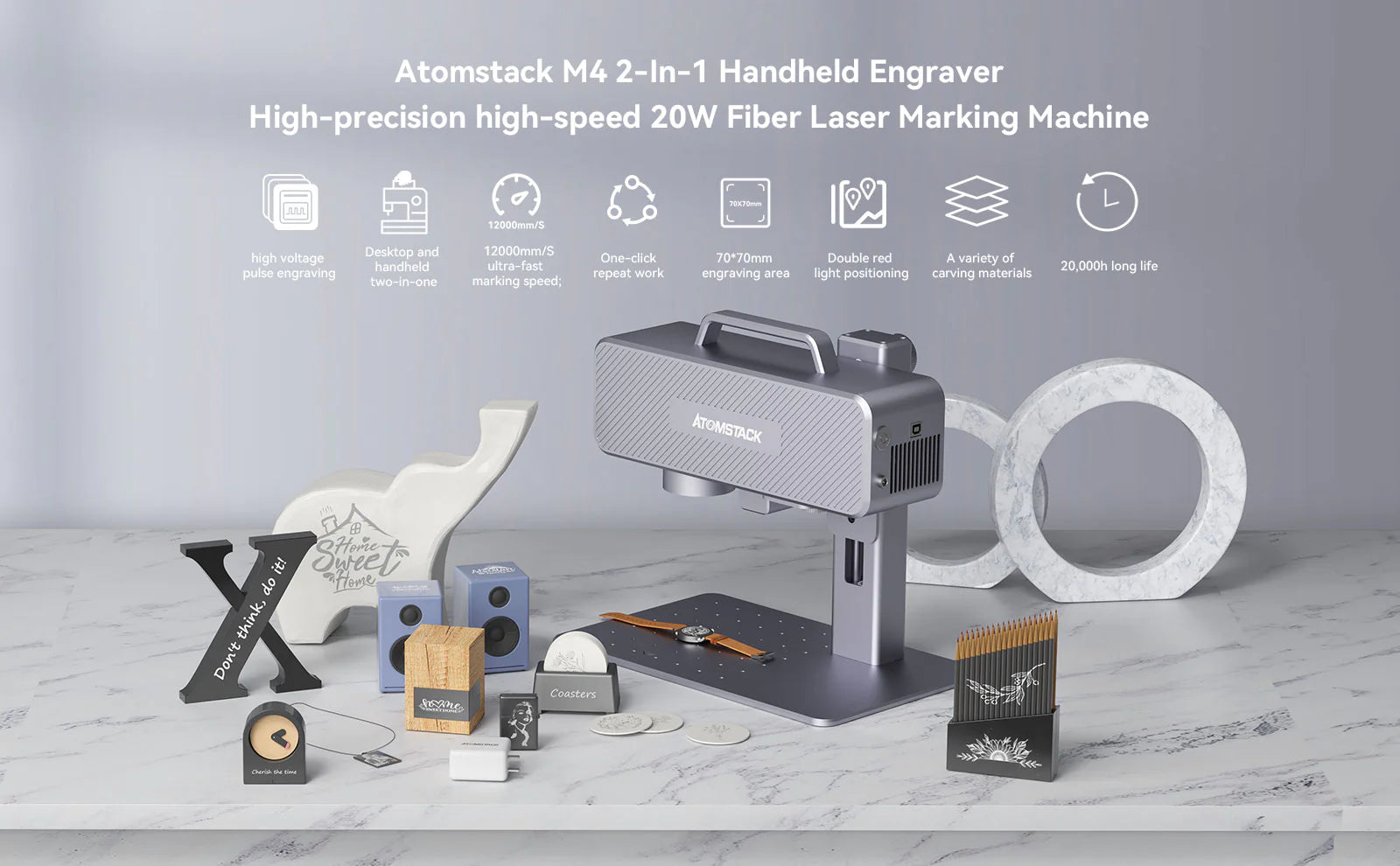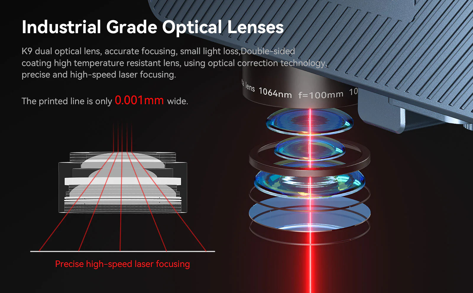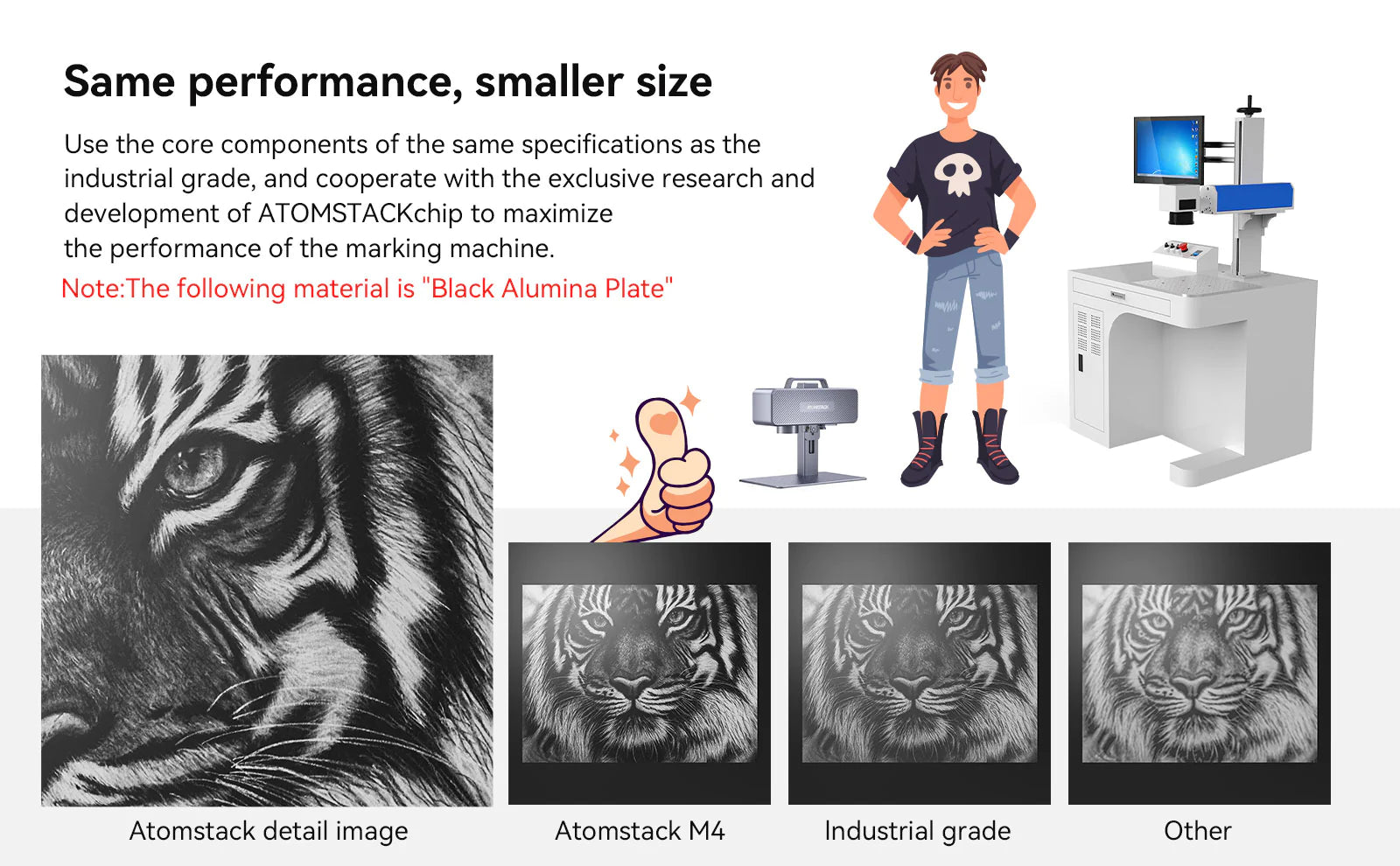 4. Industrial galvanometer technology: Atomstack M4 industrial-grade galvanometer technology greatly improves the engraving and marking speed - 12m/s high speed is 5 times faster than blue light marking machines.