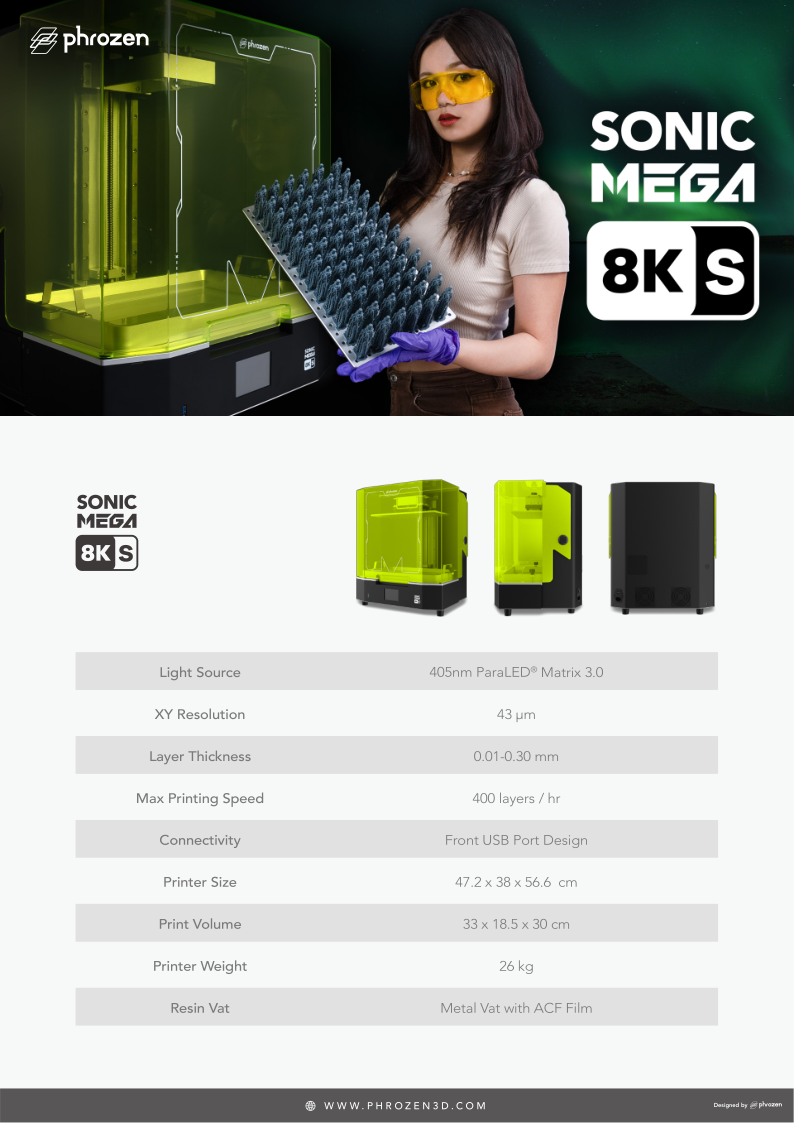 Increase your production flow with the Sonic mega 8ks 15” LCD screen and a brand new high-speed system to print up more than seventy 1/32 figurines all in one batch!