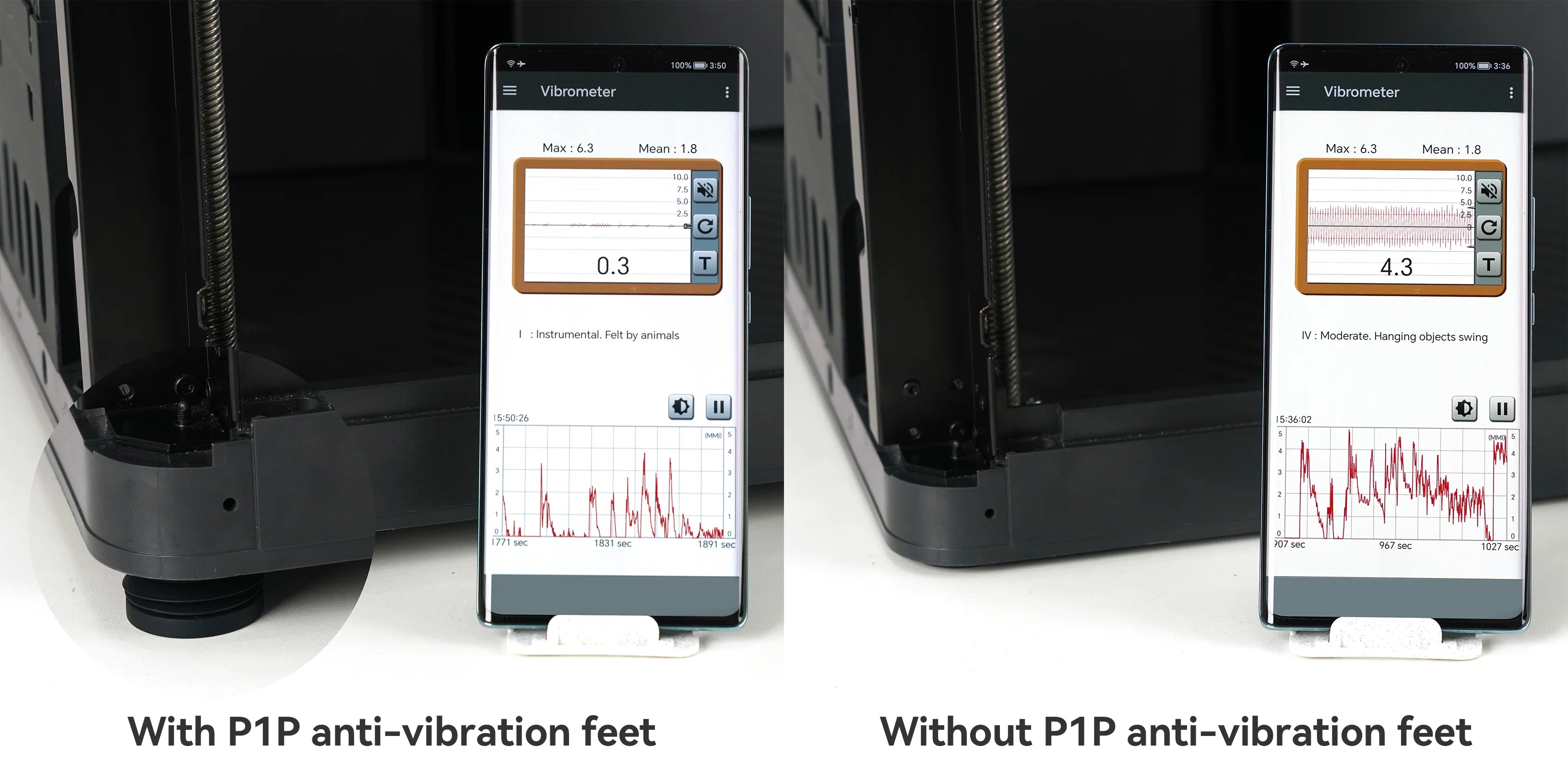 When multiple Bambu Lab P1P (more than 1pcs) are placed on the same unstable desktop, it is recommended to replace the original feet with these anti-vibration feet as they can effectively reduce the impact of machine vibration on nearby machines