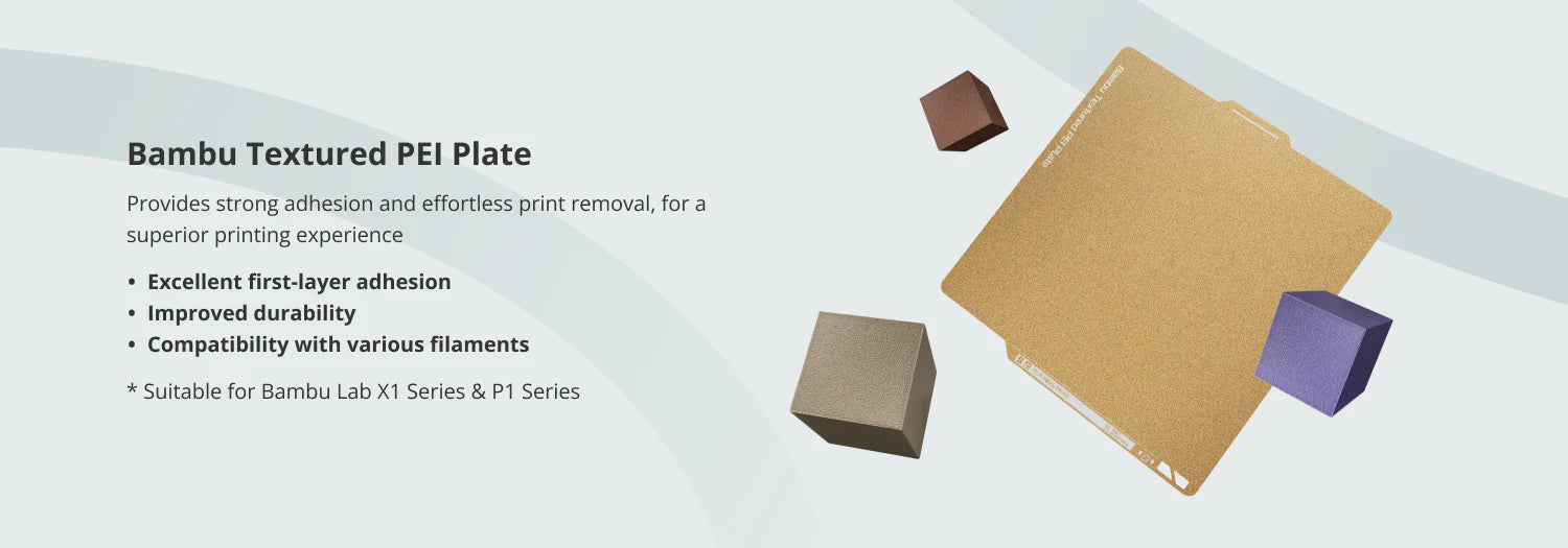 Bambu Texture PEI Plate offers a one-of-a-kind first-layer surface. Through the application of a powder-coating process, this PEI Build Plate creates a rugged texture that adds a texture to your prints.