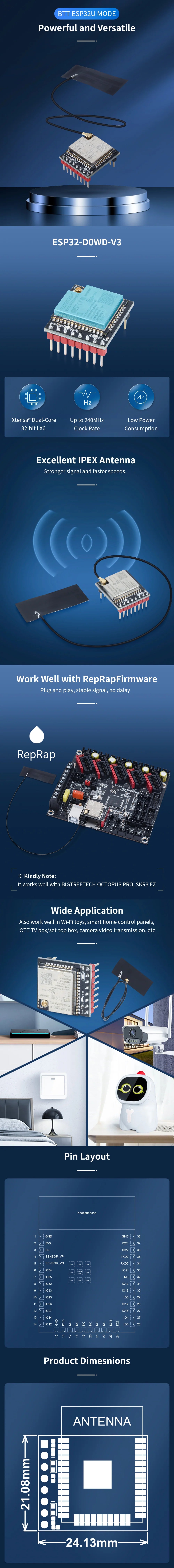 • Built-in ESP32-D0WD-V3 chip, Xtensa® dual-core 32Bit LX6 microprocessor supporting clock frequencies up to 240 MHzRate