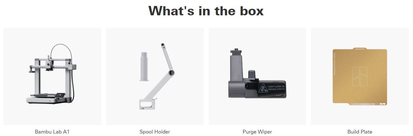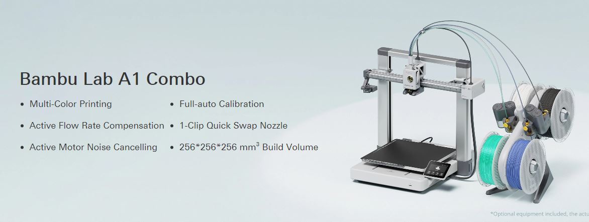 | Physical Dimensions | A1 : 385*410*430 mm³ , Package size : 552*532*320 mm³ , Net weight 8.3 kg , Gross weight 11.7 kg A1 Combo : Package size 546*536*420 mm³ , Gross weight (AMS lite included) 14.3 kg |