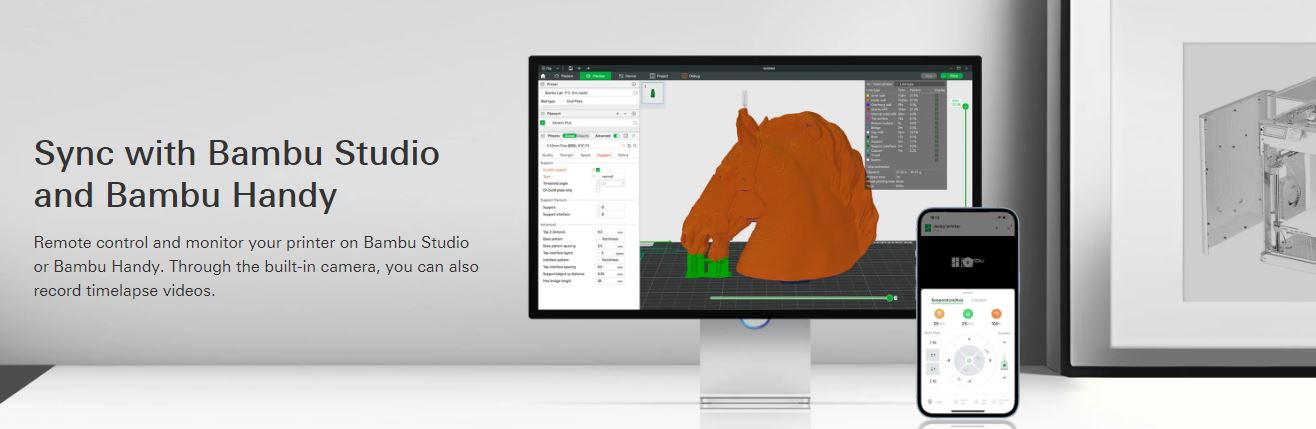 | Heatbed | Build Plate | Bambu Textured PEI Plate (Included) Bambu High Temperature Plate (Smooth PEI) Bambu Cool Plate |