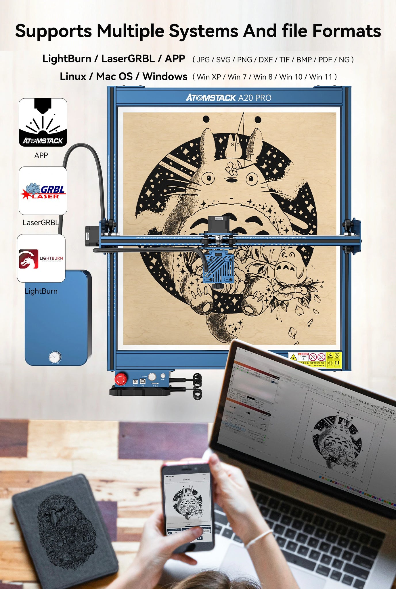 5. AtomStack Mobile App: Available on major Android and Apple stores, our custom-designed app provides a unique, seamless control experience. All in the palm of your hand!