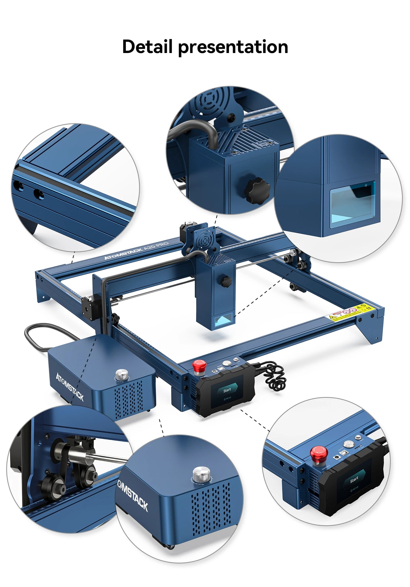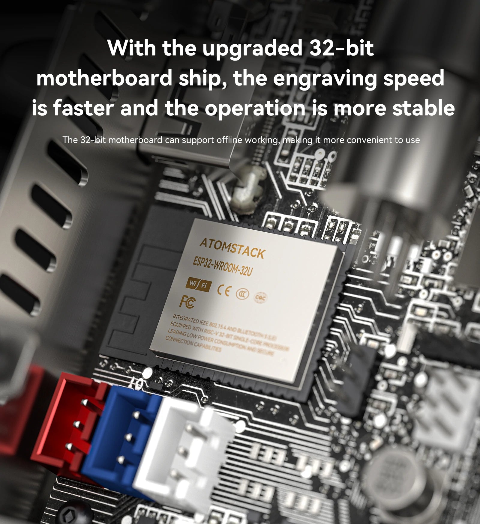 3. Advanced 32-bit Motherboard: Our latest AtomStack innovation features a 256-bit color scale, delivering unparalleled engraving clarity and contrast. Now, vibrant projects aren't just a dream!