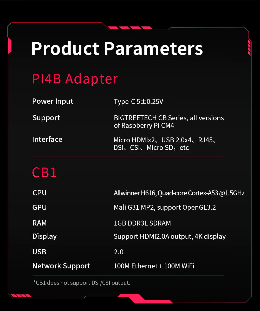2. The PI4B should be used with CB1, CB1 eMMC or CM4 core board to run Klipper.
